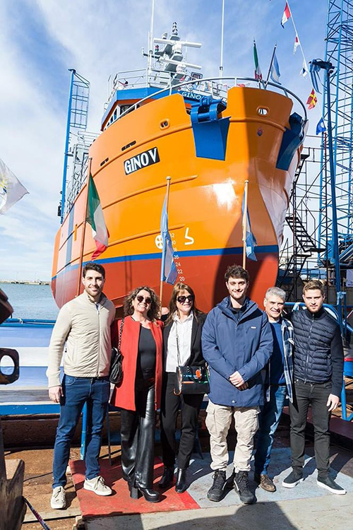 El «GINO V» es el tercer buque que el Astillero Contessi construye para la familia Vestuti-Eliceche. Esta relación, forjada a lo largo de más de dos décadas, se remonta al año 2001 con la botadura del «DON GIULIANO», buque que impulsó la renovación de la flota pesquera en el puerto de Rawson. Más tarde, en 2016, llegó el «FRANCO JOSÉ» y, finalmente, hoy se completa este ciclo con el «GINO V», homenajeando a los tres hijos de la familia y actuales protagonistas de la actividad.