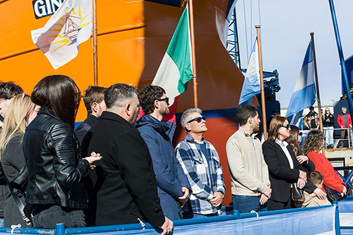 Por su parte Giuliano Vestuti en representación de la empresa armadora también hizo uso de la palabra y destacó que este barco es el broche de oro de una historia de esfuerzo y pasión.